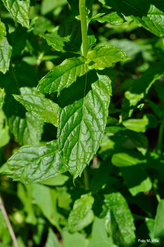 Pianta erbacea alta fino a 1 m con odore intensamente aromatico e spiccata variabilità nella pelosità. Nella maggioranza dei casi la si trova in piccole colonie profumate nei fossati, nei campi umidi, sulle sponde di corsi d'acqua.