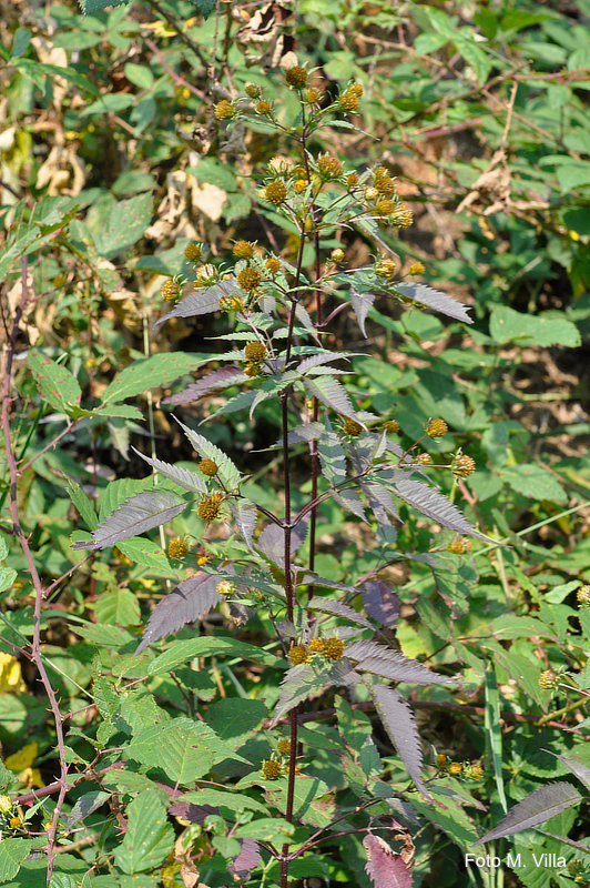 E' una pianta erbacea alta fino a 150 cm originaria del Nord America. E' una specie esotica invasiva; anche nel Parco è molto diffusa negli ambienti umidi.